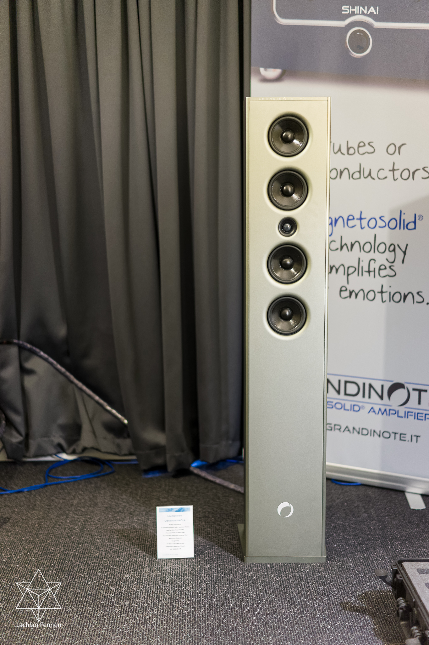 Honestly, I was underwhelmed by most of the speakers I heard today due to either the particularly dry tuning of the upper-mids / treble or the lack of imaging capabilities I was hearing in the various hotel rooms. Sure, perhaps in a more perfect / controllable setup each of these no-doubt-expensive speakers would sound wonderful, but I wasn’t generally wowed today and I was reminded of why I enjoy B&O’s acoustic lens speakers and headphones so much – they generally sound great no matter where you are in the room and what the room is like. All that said, I really liked what I heard from the Grandinote setup. I can’t help but wonder if it’s thanks to their use of multiple smaller drivers (5″ I am guessing) which are much less directional than the 6″ and larger drivers found in many of the other speakers scattered throughout the hotel. Admittedly the electronic track playing (a heavily remixed version of “Relax” by Frankie Goes to Hollywood) was probably more forgiving of off-axis listening than the acoustic jazz and classical fare in other rooms, but the Grandinote Mach 4s sounded like the real deal. Do note the photo showing their full high-tech amp setup and Skogrand cables all over the room – this setup isn’t going to come cheap, but it’s certainly worth a listen in my opinion.